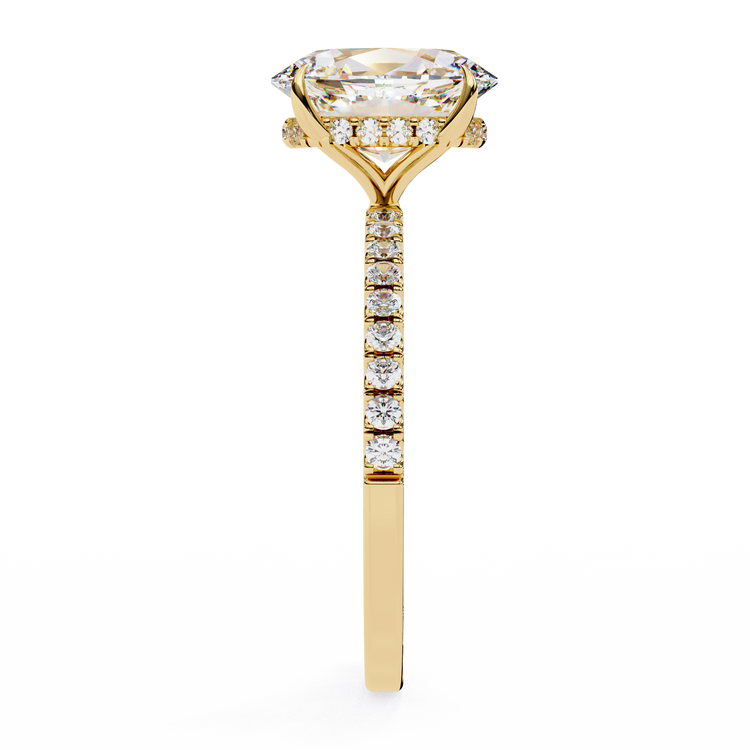 Graceful and romantic, this lab-grown Oval -cut diamond engagement ring features a captivating swirl halo design that enhances its brilliance. The flowing curves create a sense of movement and elegance, while ethical craftsmanship ensures it’s a symbol of love you can feel proud to wear.