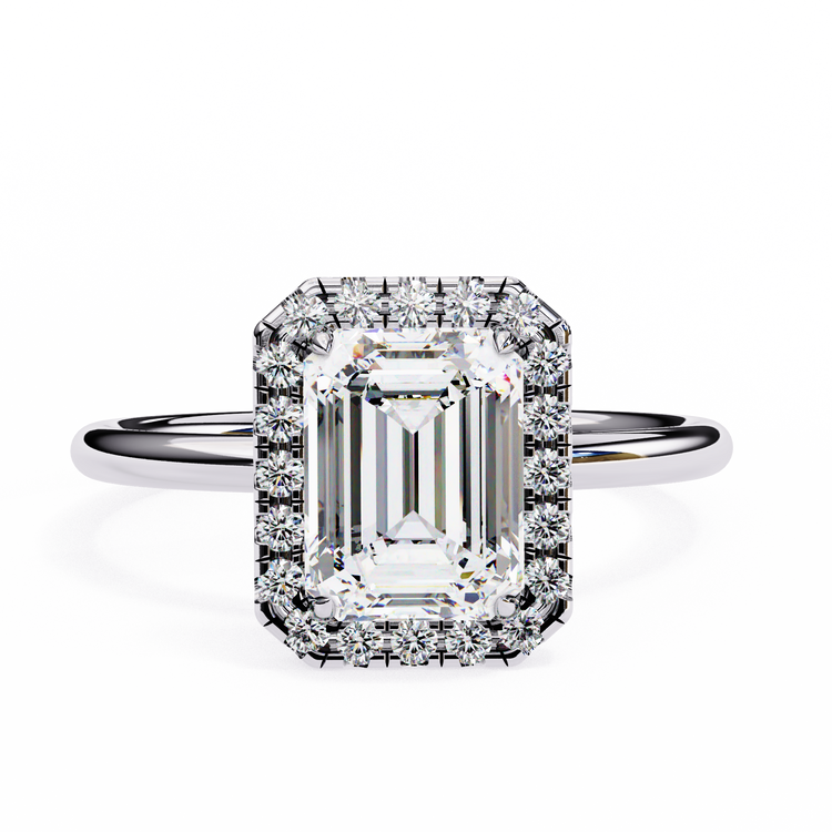 "Dazzling Emerald-Cut Halo Diamond Ring for Engagement"