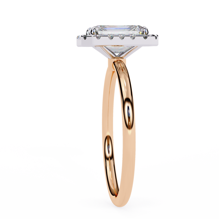 Nature-inspired elegance shines in this lab-grown Emerald-cut diamond engagement ring, featuring a delicate vine halo design. The graceful curves and floral motif embrace the center stone, offering a romantic and ethically crafted ring that celebrates love in full bloom.