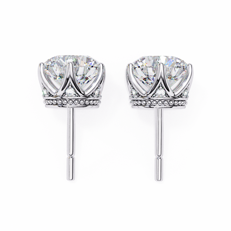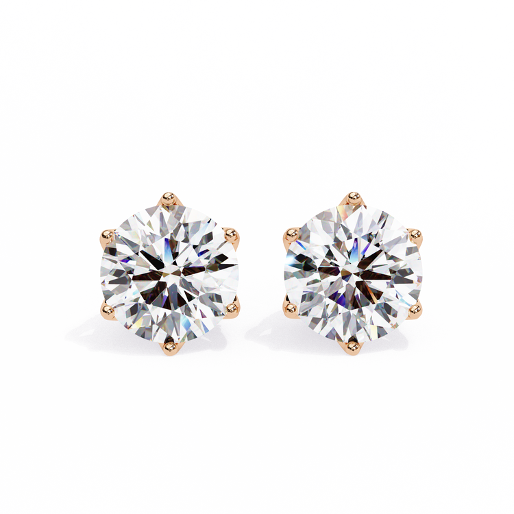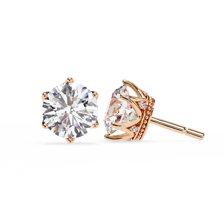 Diamond Solitaire Studs in 3ct Round Cut with Blush Gold Accents