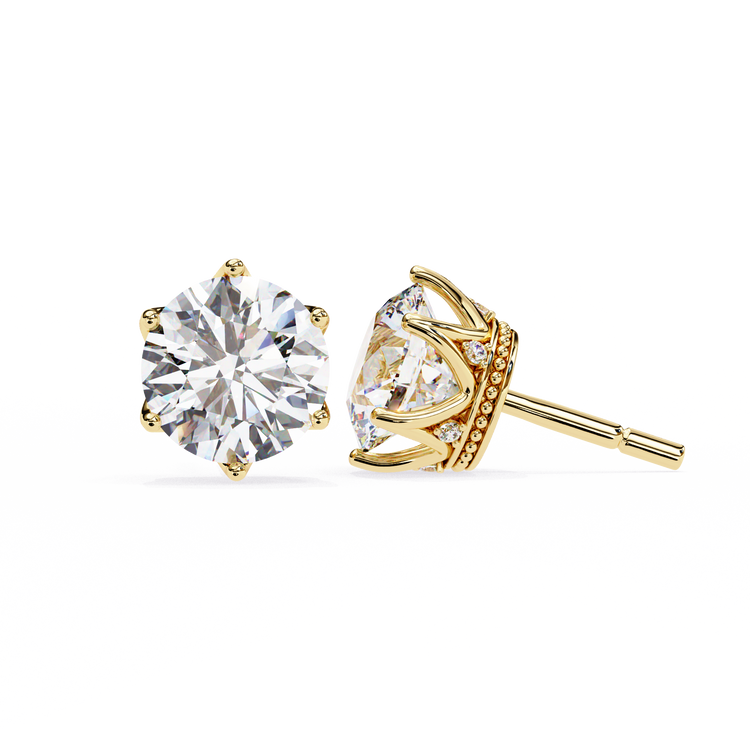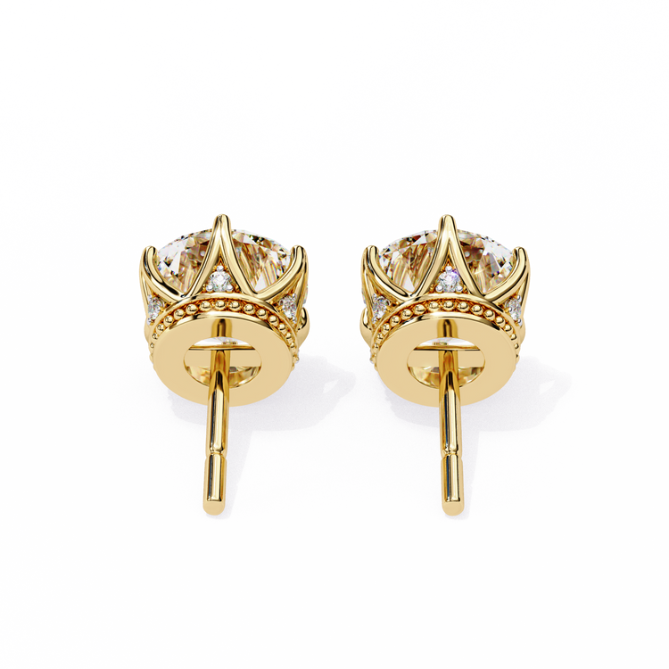 Elevate your everyday elegance with these stunning Round-Cut Diamond Stud Earrings, expertly set in warm, romantic gold. Each earring features a brilliant Round-cut diamond, chosen for its crisp geometry and exceptional fire, securely held in a classic four-prong setting that enhances the stone’s symmetry and sparkle.