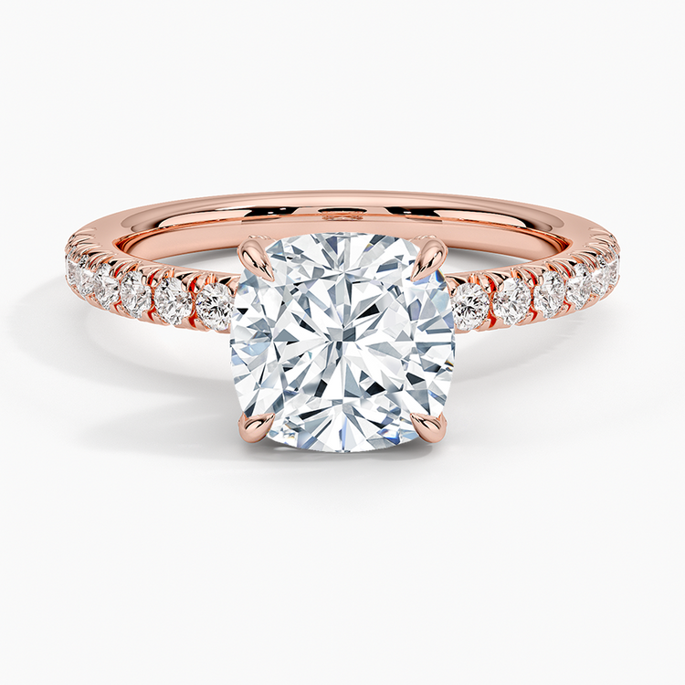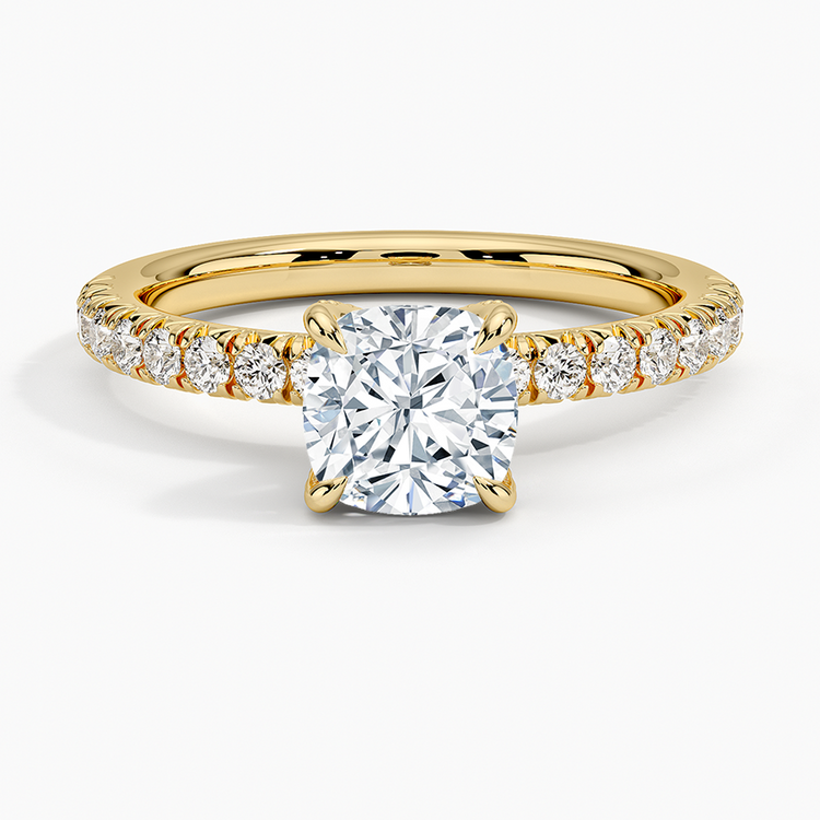 "Endless Sparkle – Cushion Center Stone Ring with Diamond-Studded Band"