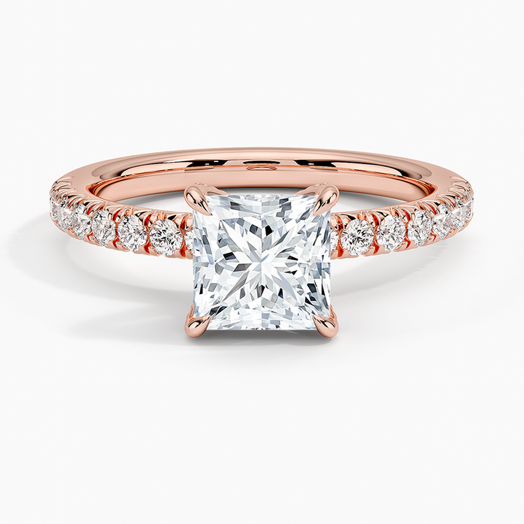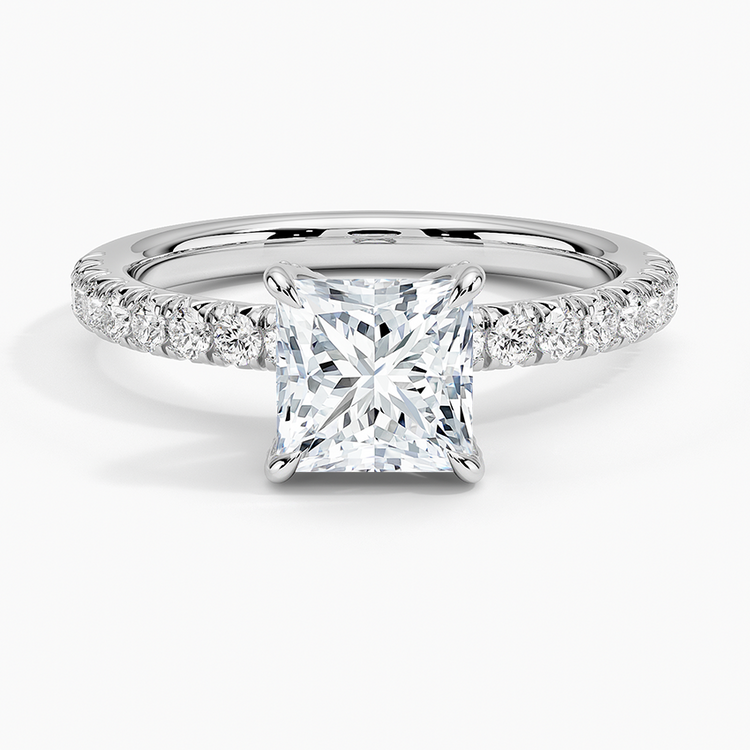 "Endless Sparkle – Princess Center Stone Ring with Diamond-Studded Band"