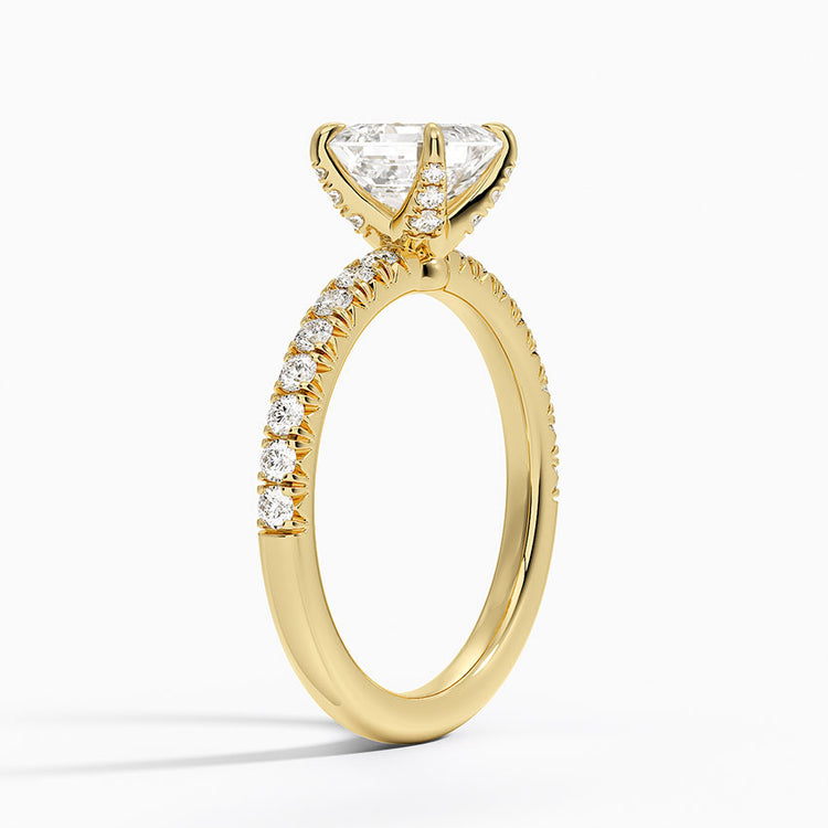 Nature-inspired elegance shines in this lab-grown Asscher -cut diamond engagement ring, featuring a delicate vine halo design. The graceful curves and floral motif embrace the center stone, offering a romantic and ethically crafted ring that celebrates love in full bloom.