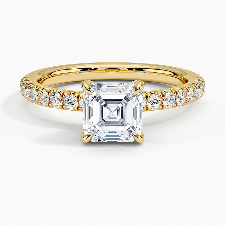 "Endless Sparkle – Asscher Center Stone Ring with Diamond-Studded Band"