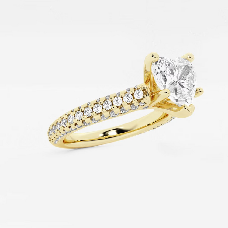 Romantic and radiant, this lab-grown heart-shaped diamond engagement ring is beautifully accented with pavé-set diamonds along the band. The heartfelt design symbolizes deep love, while ethical craftsmanship ensures it's a meaningful and responsible choice for your forever moment.
