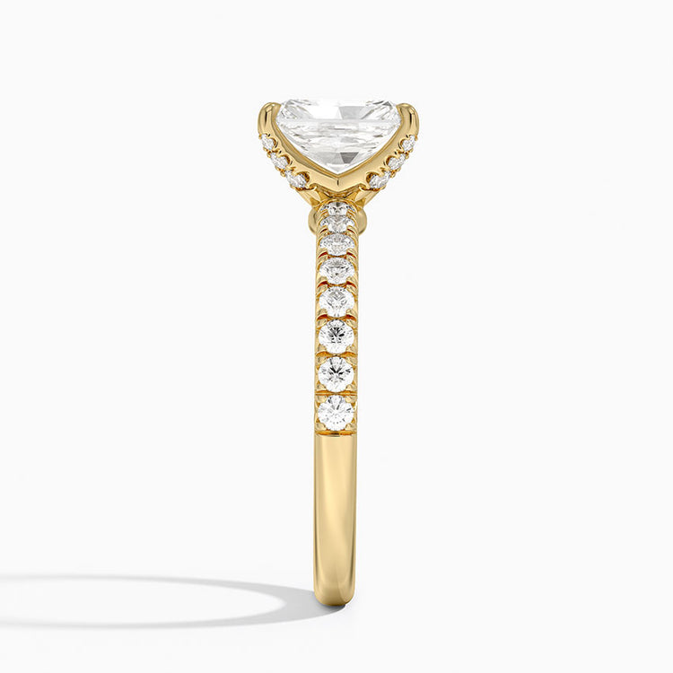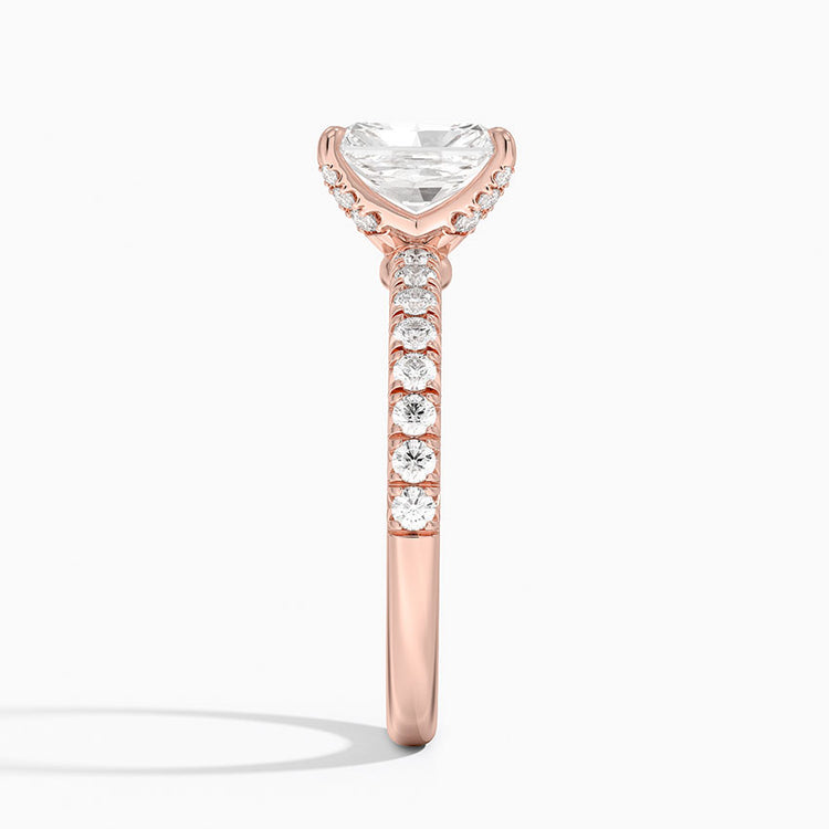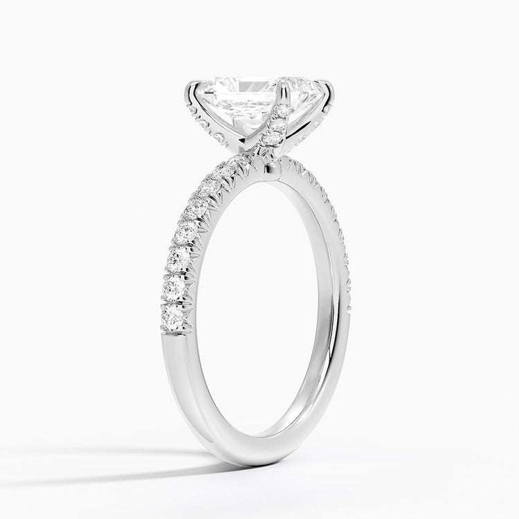 Nature-inspired elegance shines in this lab-grown Radiant-cut diamond engagement ring, featuring a delicate vine halo design. The graceful curves and floral motif embrace the center stone, offering a romantic and ethically crafted ring that celebrates love in full bloom.