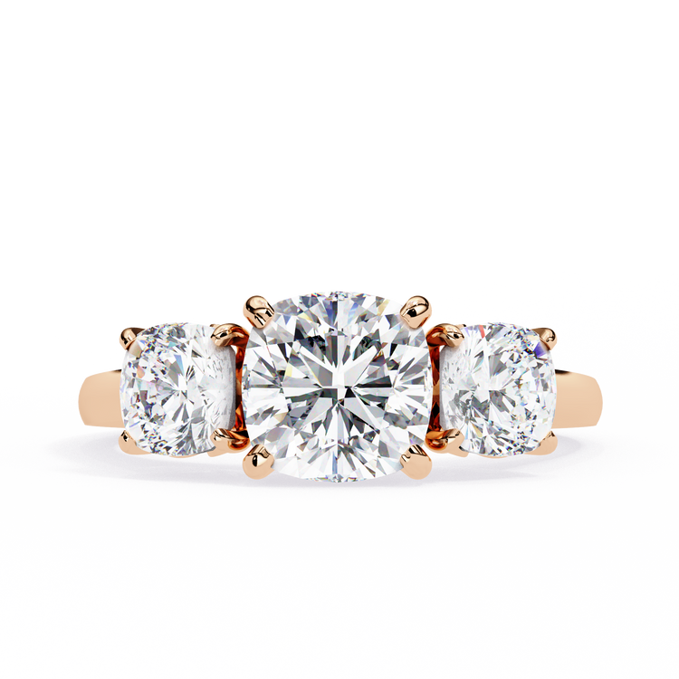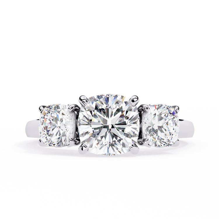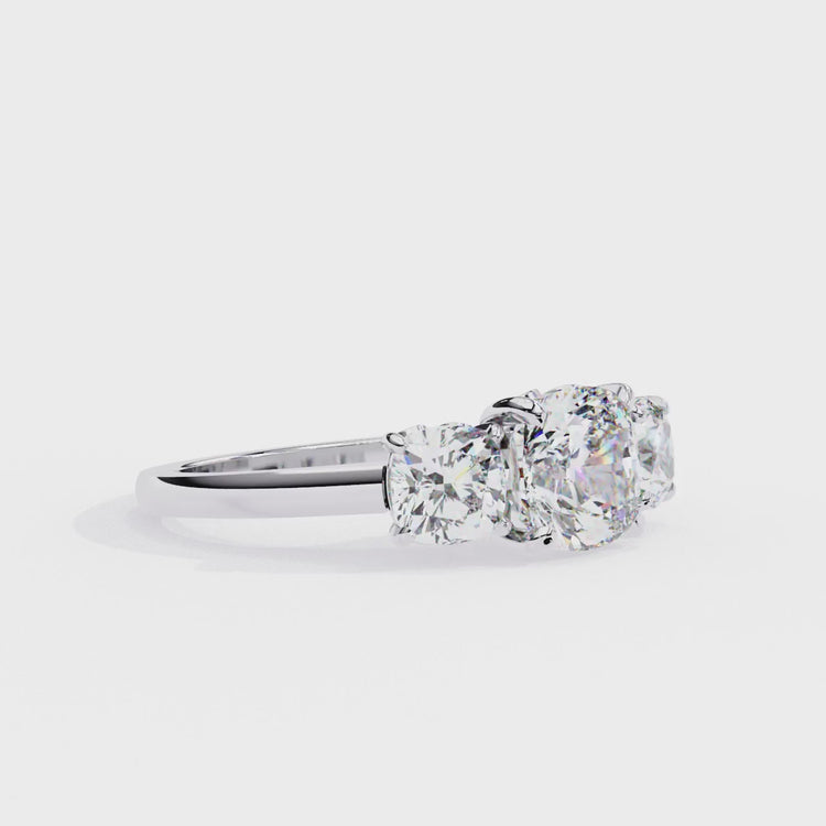 "Elegant Cushion Cut Trio Diamond Engagement Ring"
