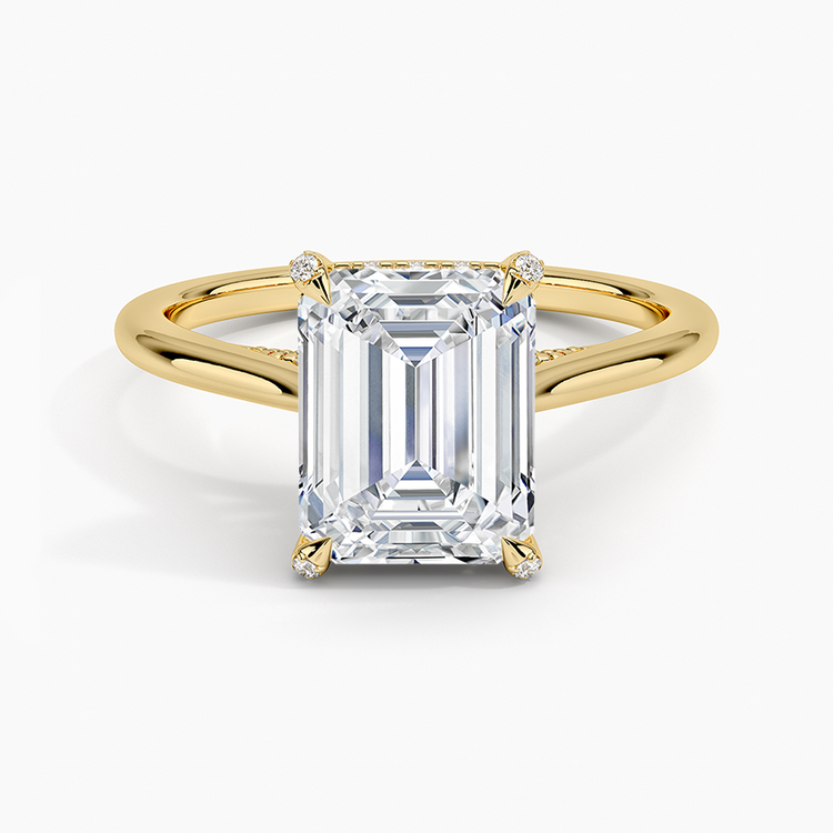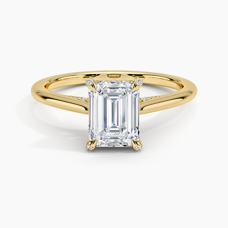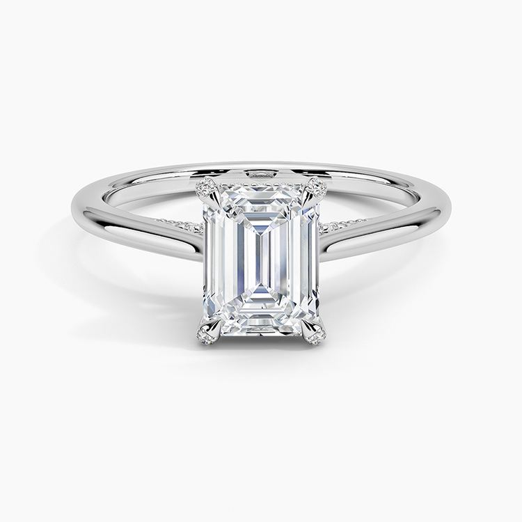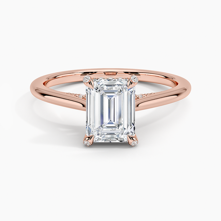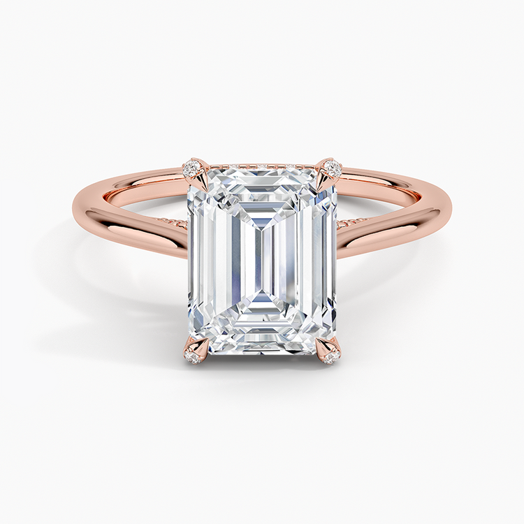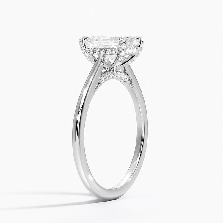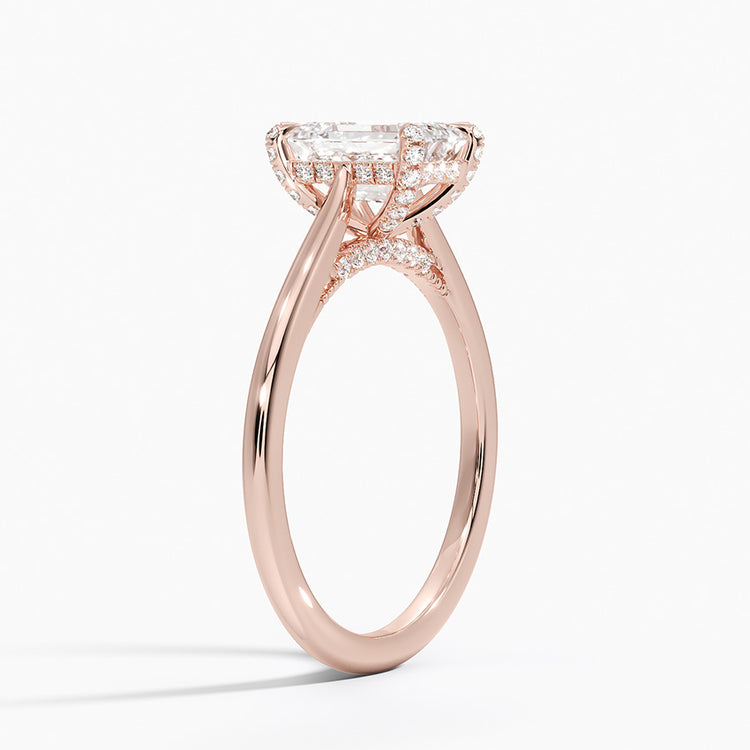 Nature-inspired elegance shines in this lab-grown Emerald-cut diamond engagement ring, featuring a delicate vine halo design. The graceful curves and floral motif embrace the center stone, offering a romantic and ethically crafted ring that celebrates love in full bloom.