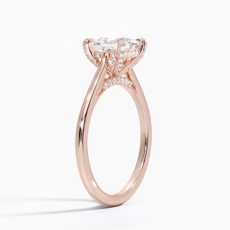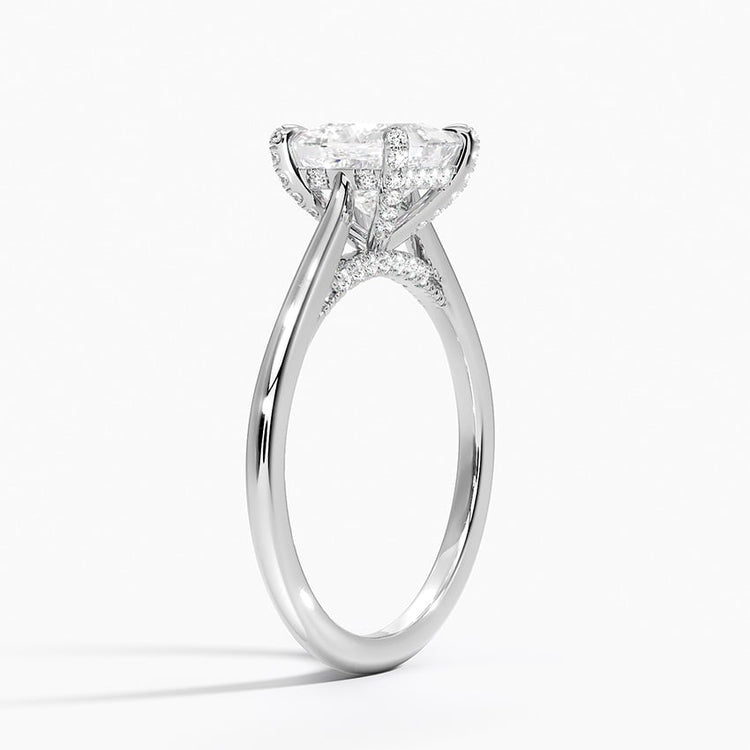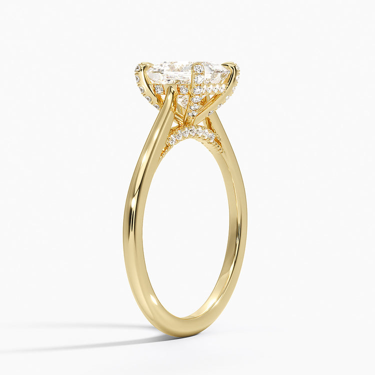 Nature-inspired elegance shines in this lab-grown Princess-cut diamond engagement ring, featuring a delicate vine halo design. The graceful curves and floral motif embrace the center stone, offering a romantic and ethically crafted ring that celebrates love in full bloom.