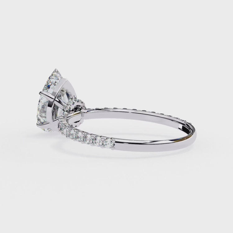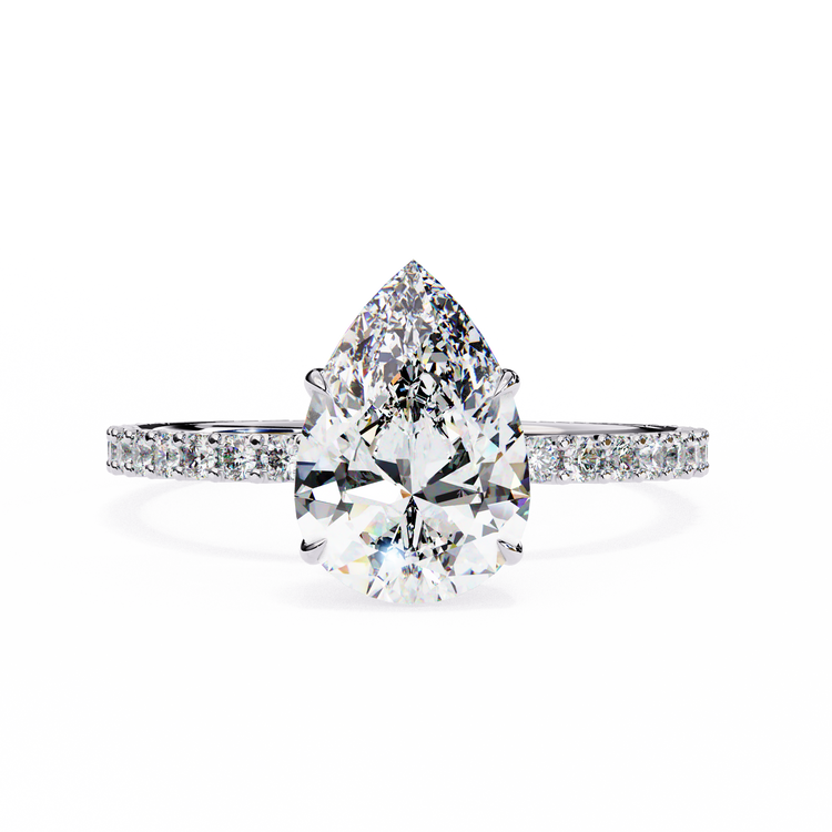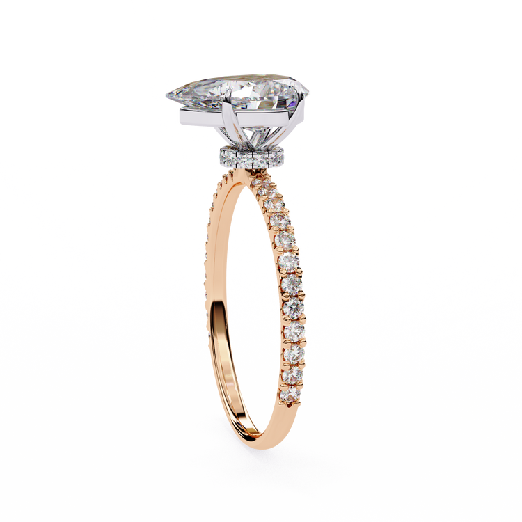 Nature-inspired elegance shines in this lab-grown Pear -cut diamond engagement ring, featuring a delicate vine halo design. The graceful curves and floral motif embrace the center stone, offering a romantic and ethically crafted ring that celebrates love in full bloom.