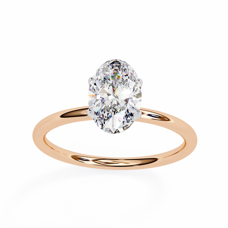 Chic and sophisticated, this lab-grown Oval-cut diamond engagement ring features a pavé prong setting with delicate hidden accents beneath the center stone. The timeless solitaire style is elevated with shimmering detail, offering an elegant and ethical choice for a love that shines from every angle.