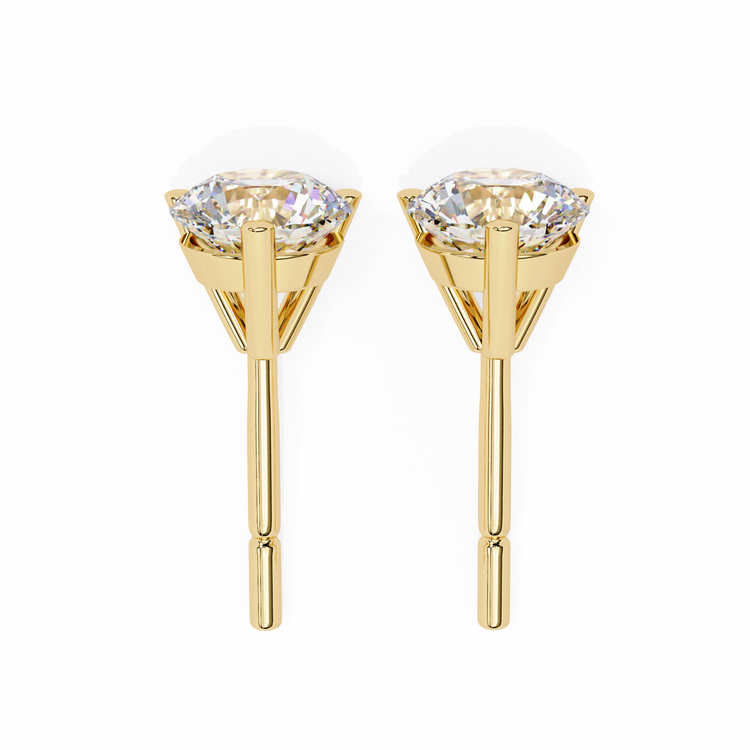 Elevate your everyday elegance with these stunning Round-Cut Diamond Stud Earrings, expertly set in warm, romantic gold. Each earring features a brilliant Round-cut diamond, chosen for its crisp geometry and exceptional fire, securely held in a classic four-prong setting that enhances the stone’s symmetry and sparkle.