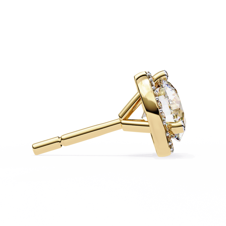 Elevate your everyday elegance with these stunning Round-Cut Diamond Stud Earrings, expertly set in warm, romantic gold. Each earring features a brilliant Round-cut diamond, chosen for its crisp geometry and exceptional fire, securely held in a classic four-prong setting that enhances the stone’s symmetry and sparkle.