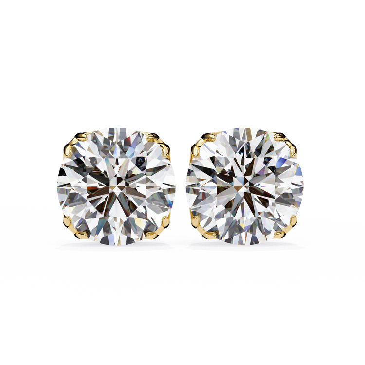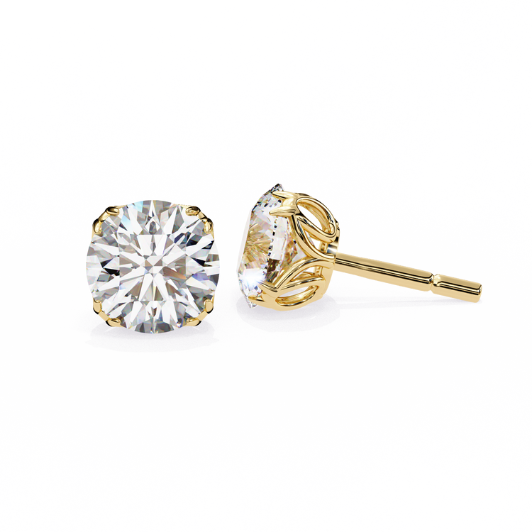 Elevate your everyday elegance with these stunning Round-Cut Diamond Stud Earrings, expertly set in warm, romantic gold. Each earring features a brilliant Round -cut diamond, chosen for its crisp geometry and exceptional fire, securely held in a classic four-prong setting that enhances the stone’s symmetry and sparkle.