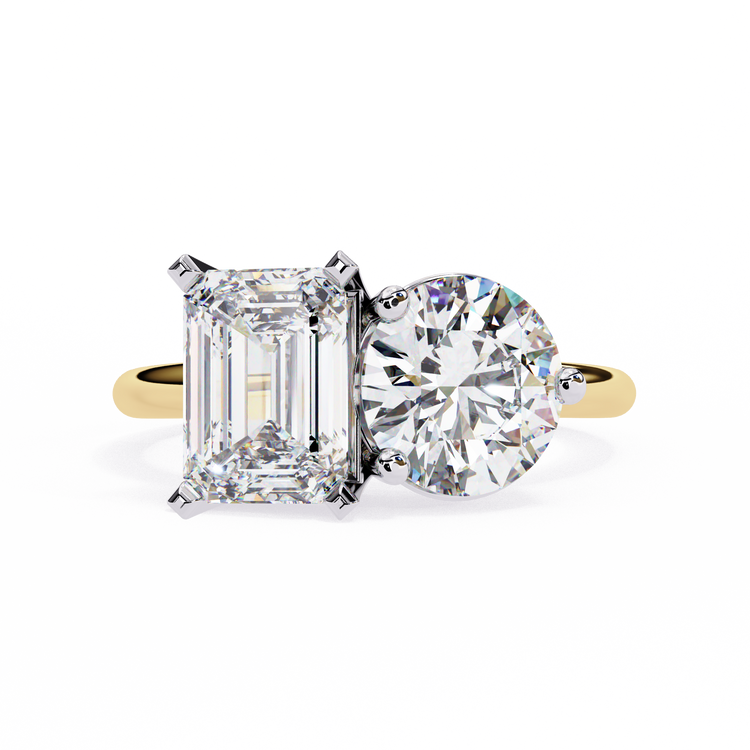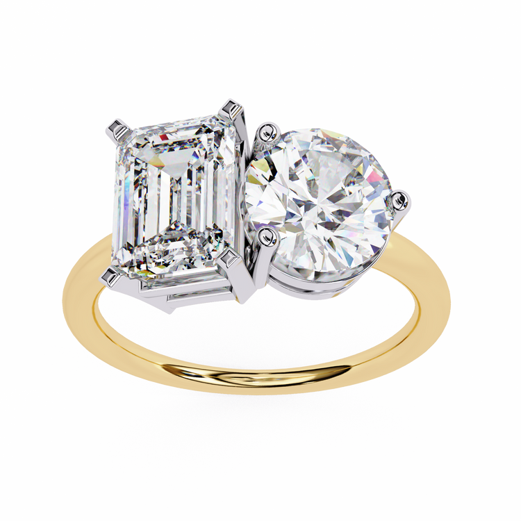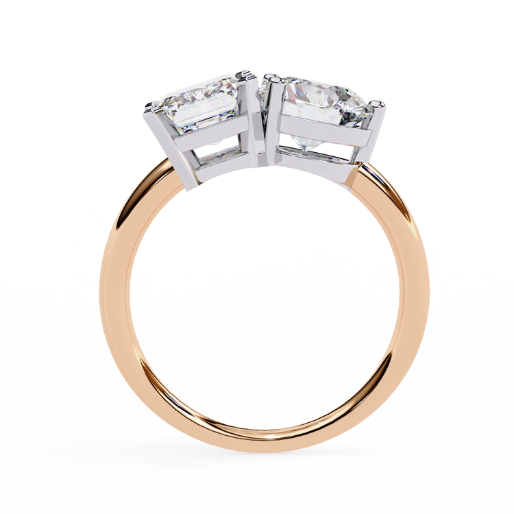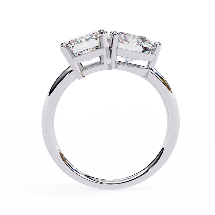 "Modern Two-Stone Diamond Ring – Radiant & Round Shape on Band"