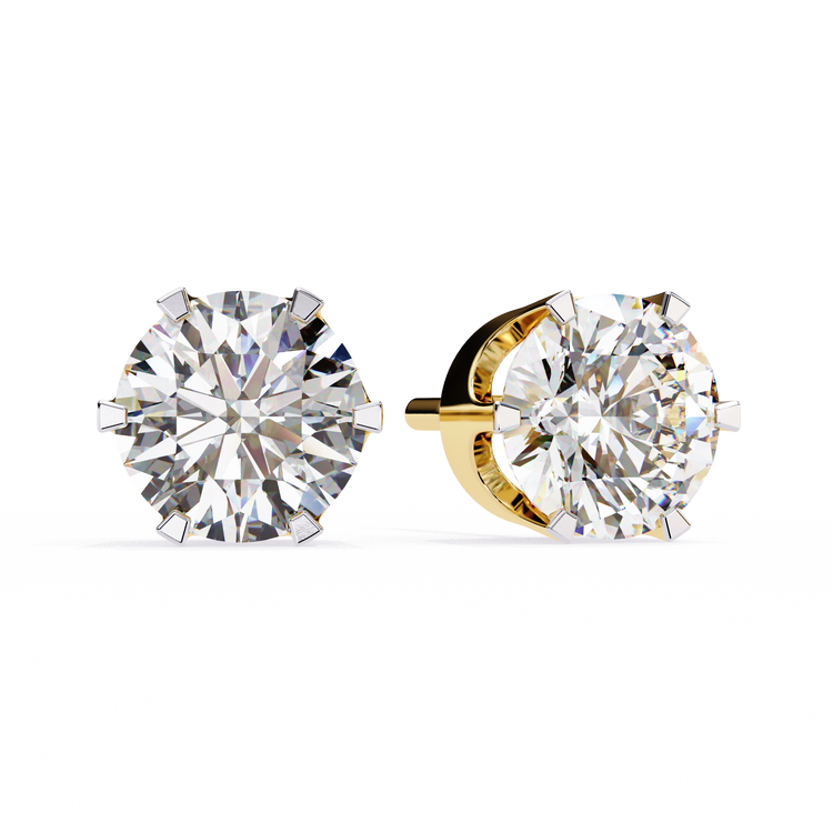 Elevate your everyday elegance with these stunning Round-Cut Diamond Stud Earrings, expertly set in warm, romantic gold. Each earring features a brilliant Round-cut diamond, chosen for its crisp geometry and exceptional fire, securely held in a classic four-prong setting that enhances the stone’s symmetry and sparkle.