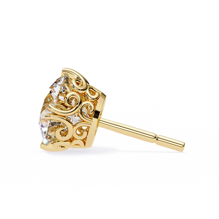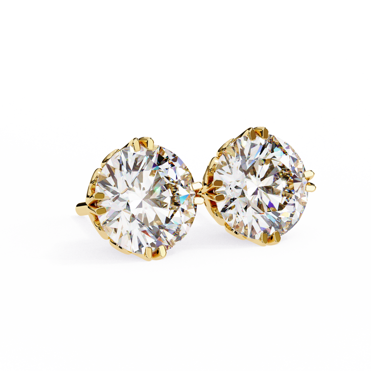 Elevate your everyday elegance with these stunning Round-Cut Diamond Stud Earrings, expertly set in warm, romantic gold. Each earring features a brilliant Round -cut diamond, chosen for its crisp geometry and exceptional fire, securely held in a classic four-prong setting that enhances the stone’s symmetry and sparkle.