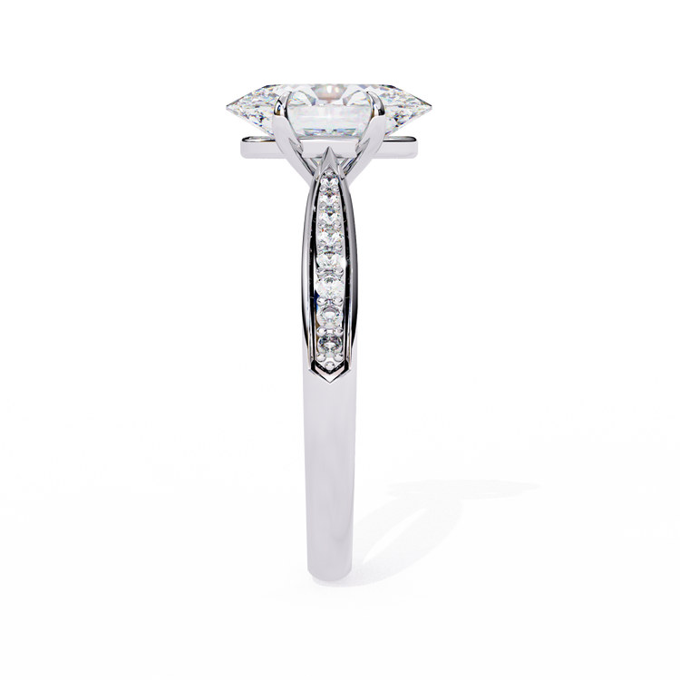 Nature-inspired elegance shines in this lab-grown Oval-cut diamond engagement ring, featuring a delicate vine halo design. The graceful curves and floral motif embrace the center stone, offering a romantic and ethically crafted ring that celebrates love in full bloom.