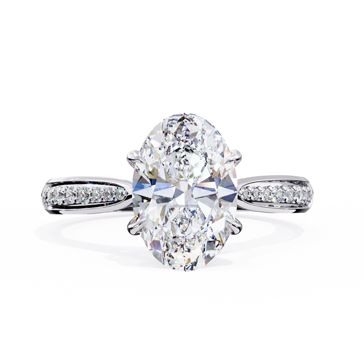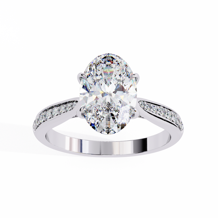 "Golden Glow: Oval Cut Diamond Ring with Sparkling Pavé Band"